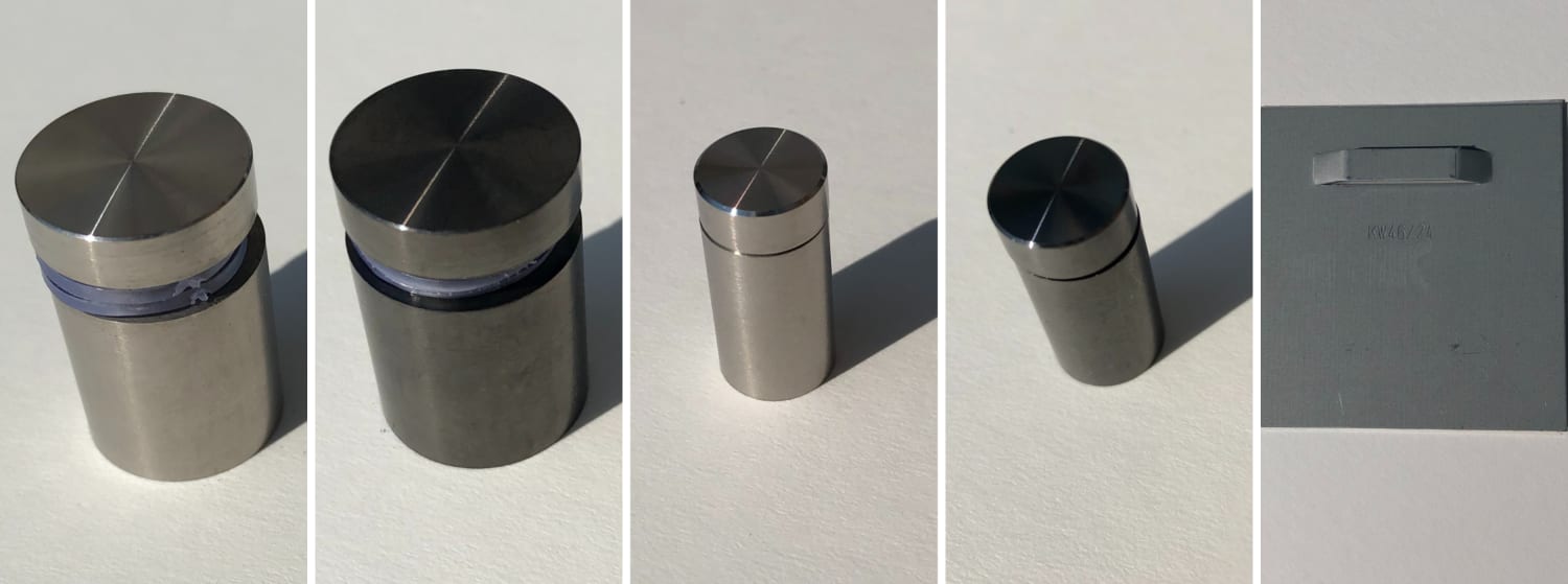 Avstandsstykker kan benyttes til akryl-/pleksi, MDF og aluminium. Små avstandsstykker brukes opp til str. 40x60 cm. Store benyttes fra størrelsen 50x70 cm og oppover.